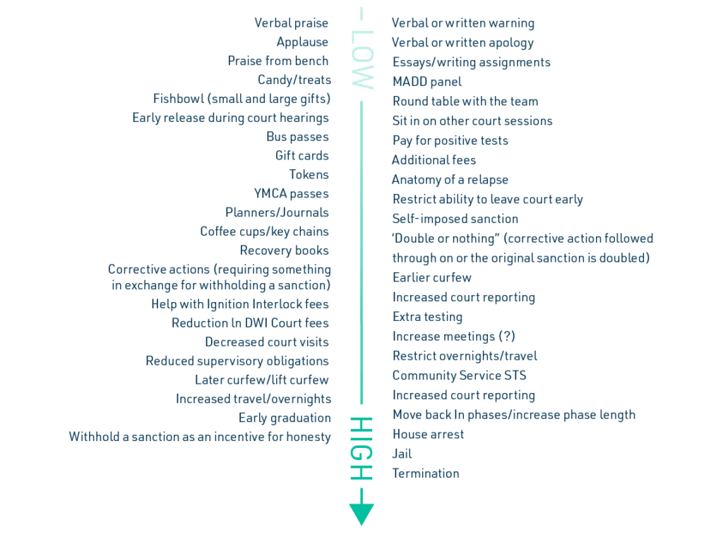 Figure: Range of incentives and sanctions (low to high) in a DWI court setting