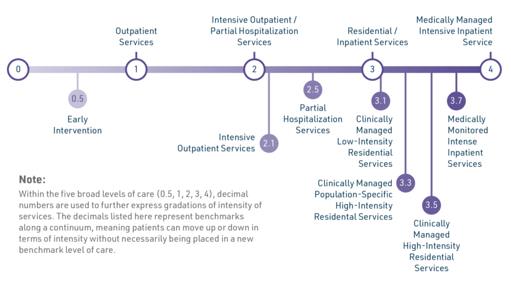 Detailed descriptions about each levels of care, the types of services offered to patients, and how to identify individuals who would most likely benefit from these services are outlined in the ASAM Criteria.