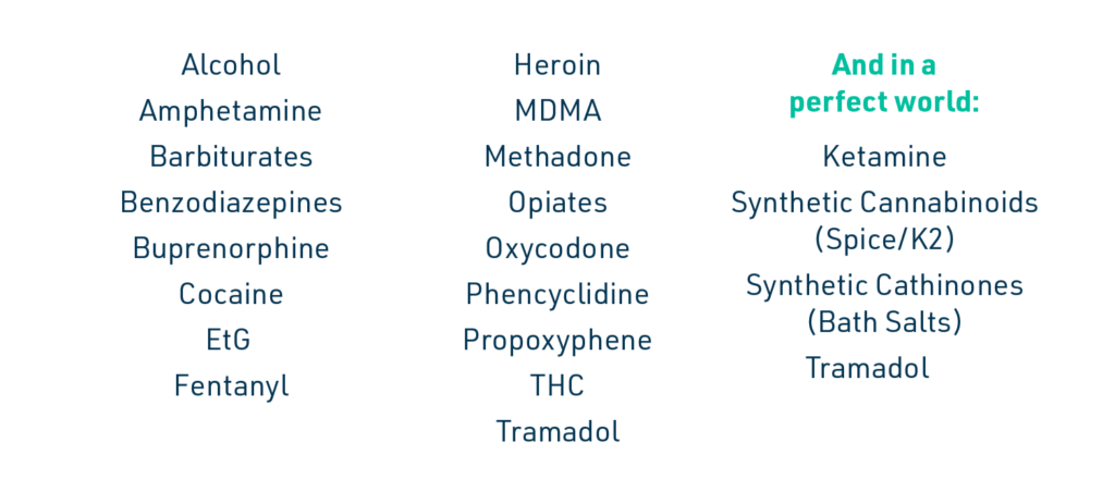 For drug testing among impaired driving offenders, best practices dictate that broad panels be used initially to capture as many substances as possible. This provides the monitoring agency with a good indication of what is being used by clients. The broader the panel, the more expensive the testing, so if offenders screen negative for the majority of compounds then the drug panel should be reduced.