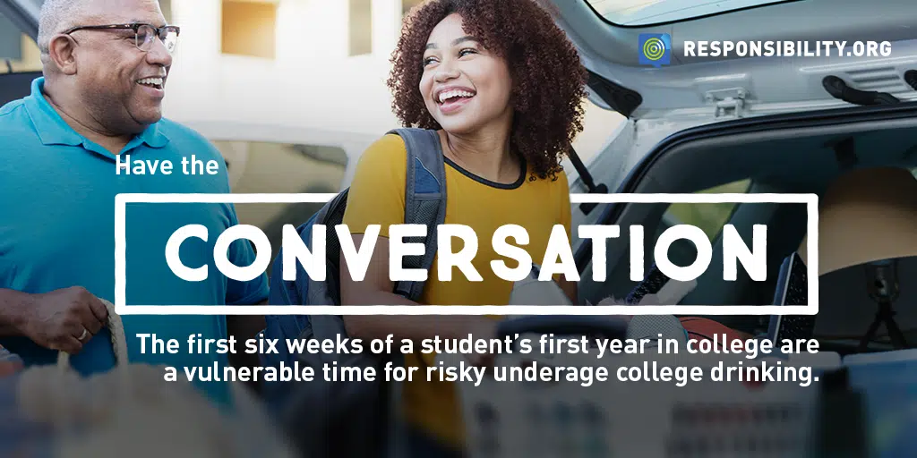 Parents, you are doing a great job! Keep up the good work – just look at the declines in underage drinking to see the difference you are making. When you talk, your kids—even your college bound kids—hear you and are listening. These conversations will make a big difference in the decisions they make as they head off to college, start a new job, or launch into more independence.
